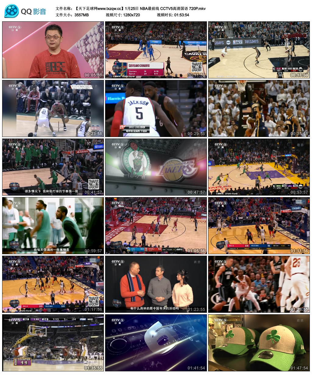 1月25日 NBA最前线 CCTV5高清国语 720P MKV 3.47GB【百度+BT下载】